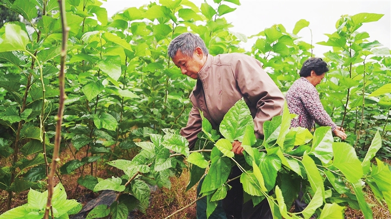 这场变革,也重构了村民与土地的关系。定光村的89亩桑园采用了“公司+村集体”模式运营,“今年第一年,每亩桑叶产值约1130元,村集体可收益约240元。”定光村党委书记胥燕琴算着账补充道,“对于村民来说,土地流转有租金,在园区务工一年还能挣钱,一举两得。”