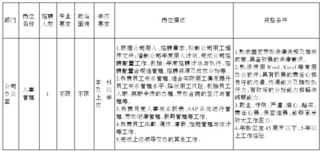 四川长虹电源股份有限公司关于招聘人事管理岗位的公告