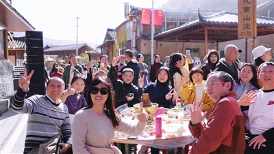 夜幕降临,祥述加寨的若恩广场燃起熊熊篝火,火光将广场照得通亮。各地游客与白马藏族同胞手拉手围成大圈,跟着欢快的鼓点跳起圆圆舞。脚步越踏越齐,歌声越唱越响,笑声与喝彩声此起彼伏,不同民族的人们不分彼此、尽情欢腾,浓浓的情谊让整个村寨充满生机与暖意。“专门来体验当地人文风情,篝火晚会太有感染力了,和当地同胞一起跳舞,真切感受到民族文化的魅力。”游客熊中丽说道。