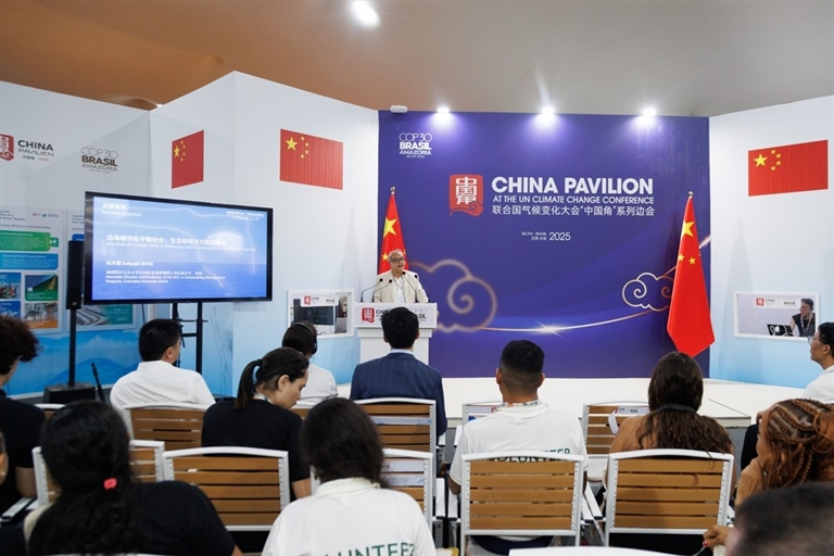 11月10日,“美丽海湾 美好生活”海洋生态文明故事汇暨《中国可持续发展报告(2025)》发布活动在《联合国气候变化框架公约》第三十次缔约方大会(COP30)“中国角”举行。在巴西北部城市贝伦,美国哥伦比亚大学可持续发展管理硕士项目副主任、教授石天傑在活动上发言。 新华社发