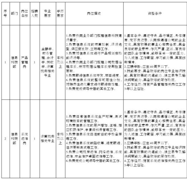 现因经营发展需要,公开招聘产品管理岗、系统运维岗各1名: