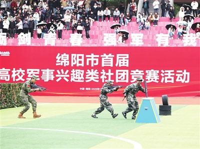 本报讯(记者 胥江 刘凤君)11月14日,“砺剑青春,强军有我”绵阳市首届高校军事兴趣类社团竞赛活动在绵阳职业技术学院举行。来自全市11所高校军事兴趣类社团的700余名队员,围绕队列动作、基础体能、战术基础动作等项目展开激烈角逐。
