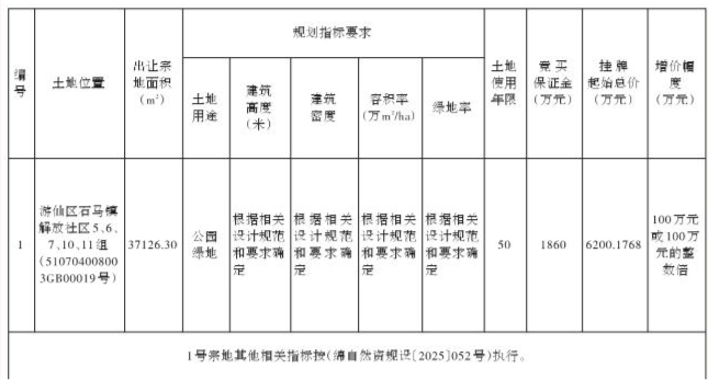 六、本次国有建设用地使用权挂牌地点为绵阳市游仙区公共资源交易服务中心(游仙高新区五里梁东山大道南段6号政务大楼4楼)。挂牌竞价时间:2025年12月5日9:00至2025年12月14日16:00。