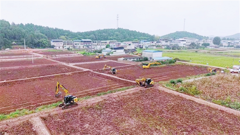 眼下,三台县正加快推进高标准农田建设。在金石镇三秀村的田间地头,大型机械实施“小田”变“大田”改造,为粮食丰收打下坚实基础。