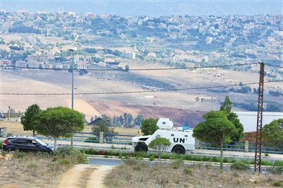 9月22日,在黎巴嫩迈尔杰云,联合国驻黎巴嫩临时部队的巡逻车在黎以边境巡逻。