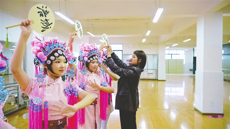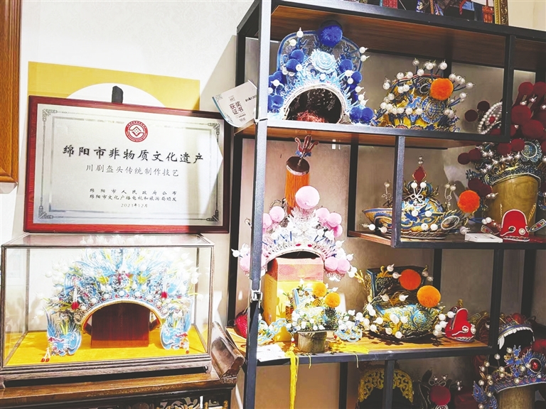 “一二三四,二二三四……”近日,记者走进涪城区文化馆排练厅,队员们正在老师指导下认真排练。“川剧盔头,是川剧戏帽的统称,其传统制作技艺承载着丰富的戏曲文化,是一项重要的传统手工艺。”涪城区文化馆副馆长夏熹介绍,2023年12月,该技艺被正式列入绵阳市第七批市级非物质文化遗产代表性项目名录。