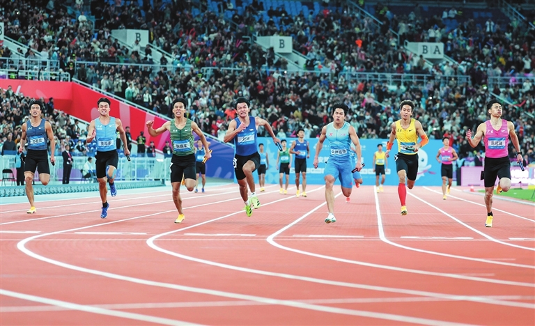 田径赛场,16岁的陈妤颉成为全运会史上最年轻的女子100米冠军,成就短跑“双冠王”。男子100米决赛,8名选手都是“00后”,冠军李泽洋自信地喊出“中国的短跑大旗我们来扛”。