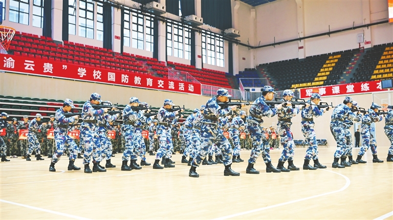本报讯(涪城融媒 记者 尹秦 王泽宇)“稍息、立正!”伴随着清脆嘹亮的口令,来自四川、重庆、云南、贵州四省市的百余名中学生身着迷彩服,动作整齐划一,稚嫩的脸庞上透着坚毅。11月21日,“川渝云贵”学校国防教育交流活动在绵阳市涪城区体育馆正式开营。