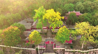 三台琴泉寺百年银杏上演冬日浪漫童话。 记者 李春梅 摄