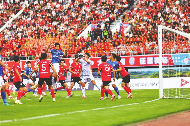 绿茵场上,绵阳九洲长虹队的球员们涵盖“00后”小将与“80后”老将,身份遍及教师、青训员、高校学生。他们因热爱集结,在赛场上奋勇争先、顽强拼搏。10月7日,绵阳队主场迎战德阳队,面对率先进球的强大对手,绵阳队始终没有放弃,在最后的补时阶段成功逼平德阳队,用汗水向全场球迷诠释了“不抛弃、不放弃”的体育精神。
