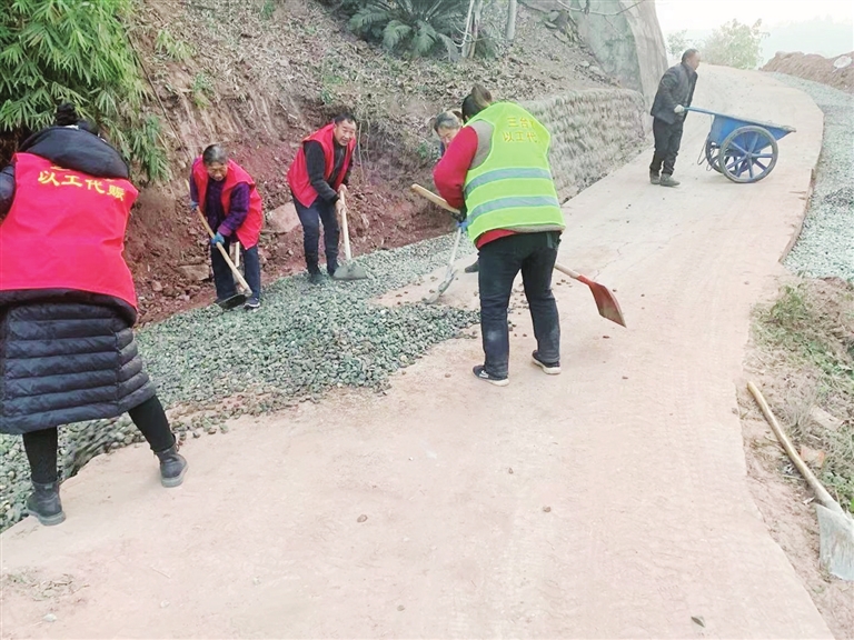 在古井镇古井村十七组,一段150米的通组路正在施工。古井镇副镇长王刚介绍,项目采用以工代赈方式,吸纳32名村民就近务工,既修了路,又富了民。放眼全镇,通组路建设达9.2公里,包括道路加宽和新建项目。