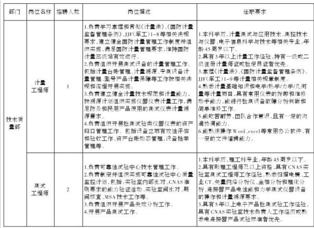 因公司经营发展需要,现面向长虹控股集团内、外部诚聘计量工程师等岗位人员,具体岗位招聘信息公告如下: