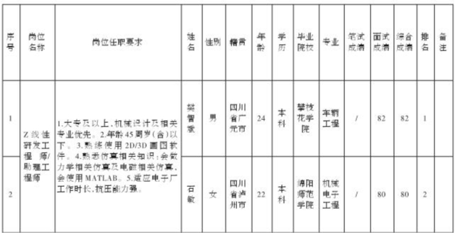 四川安和精密电子电器股份有限公司关于招聘Z线性研发工程师/助理工程师测试成绩的公示