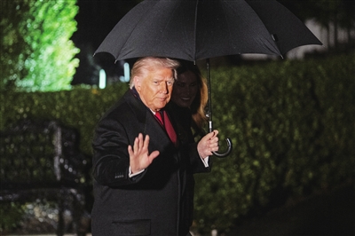 十一月二十五日,在美国首都华盛顿,美国总统特朗普离开白宫。 新华社记者 胡友松 摄