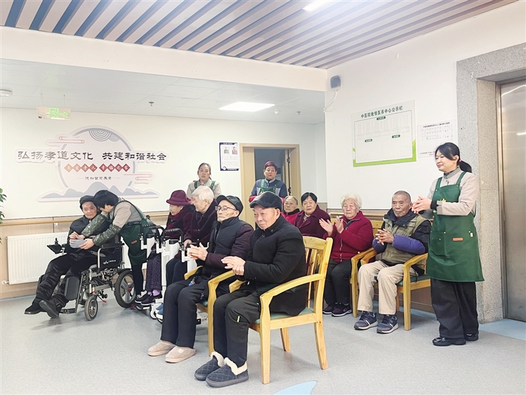 记者走访时看到,一楼多功能厅里歌声飞扬,老人们正兴致勃勃地排练舞蹈;三楼活动区内,护理员带领着老人们做养生拍打操,活动筋骨;几位老人则在棋牌室里悠闲地对弈。“这里吃得好、住得好,每天都乐滋滋的!”86岁的李克珍老人满意地说。