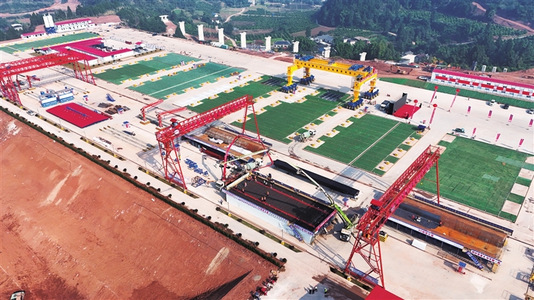 省委十二届八次全会提出,加快构建区域协调发展新格局。作为深入推进五区共兴发展,增强重要节点城市发展活力的一条交通新动脉,绵遂资内铁路建设备受关注。图为11月27日,绵遂资内铁路首榀箱梁预制顺利完成。 记者 王勇 摄