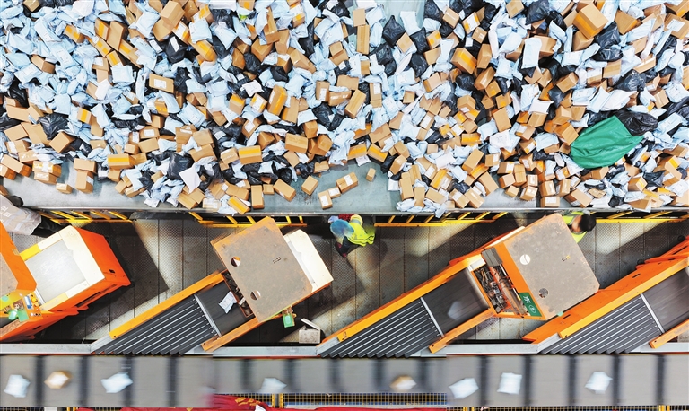 截至11月30日,我国快递年业务量再创新高,已超去年全年业务量,相当于去年全球快递包裹业务量的67%,折射超大规模市场的充沛活力。