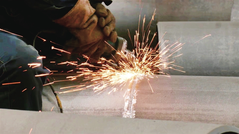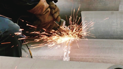 日前,在江油高新区的四川陆亨能源科技有限公司生产车间内,焊工正通过智能焊接机械臂对受热面管束进行拼接。 记者 陈元松 摄