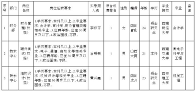 根据四川九州电子科技股份有限公司发布的招聘公告及招聘相关规定,经测试、考察、体检等程序,拟录用李修齐等3名同志到四川九州电子科技股份有限公司工作,现予以公示,具体情况如下: