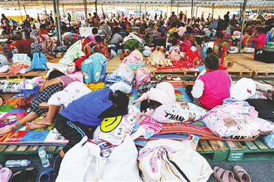 12月8日,在泰国武里南府,撤离边境省份的民众在一处避难所休息。 新华社发
