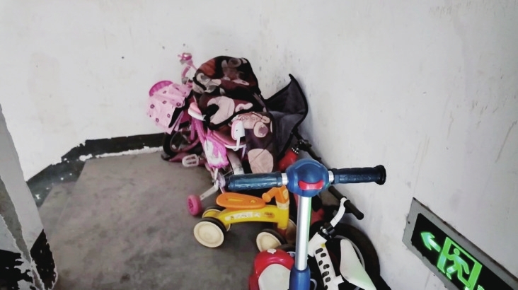 除了设施老化,日常管理中的“动态隐患”同样突出。在位于涪城区的未来城小区,尽管单元楼栋内张贴着“消防器材禁止挪用”“禁止堵占消防通道”等类似提醒通知,但楼道内杂物乱堆乱放的情况依旧屡见不鲜——有的业主将旧鞋柜靠在墙边,有的则把纸箱、塑料玩具等堆在楼梯转角,个别楼道的杂物甚至占了一半通行空间,居民上下楼需侧身绕行。
