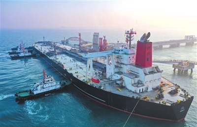 第一批“零关税”石化原辅料顺利通关,标志着洋浦石化产业可享受原料“零关税”进口及加工增值免关税内销双重红利,为推动石化产业链往高端走、往下游走提供了坚实保障。图为当日,一艘装载着17.9万吨石化原辅料的船舶泊入国投洋浦油储码头30万吨级原油泊位(无人机照片)。 新华社记者 郭程 摄
