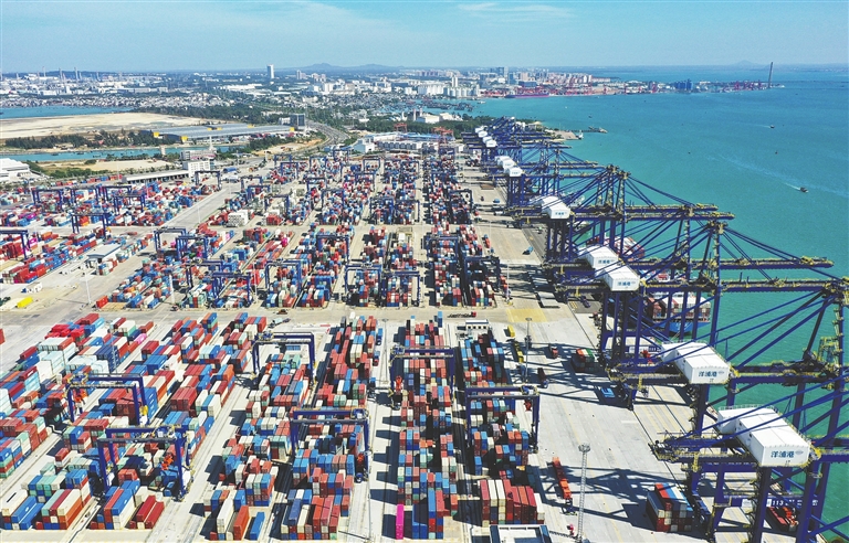 海南洋浦港,货轮靠泊、集装箱有序装卸。海南自贸港封关在即,港区通关流程进一步优化,“一线”放行更加高效,“二线”监管持续完善。