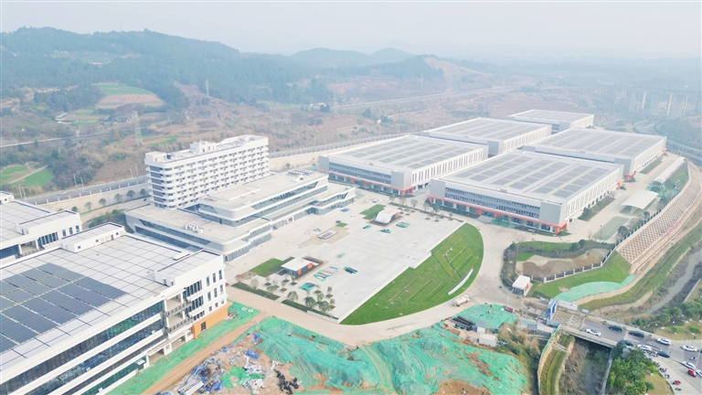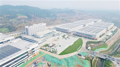近日,记者在游仙区空天技术应用产业园看到,充满科技感的办公楼、飞机造型的景观与气势恢宏的厂房相互映衬,工人们正加紧进行道路、线路等附属设施的收尾施工,一座“空天新城”的轮廓正日渐清晰。
