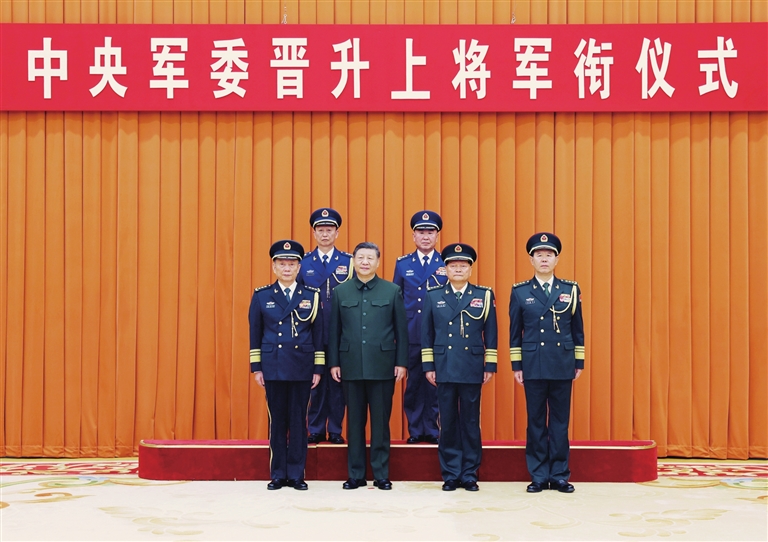 中央军委委员刘振立,军委机关各部门、军队驻京有关单位主要负责同志等参加晋衔仪式。