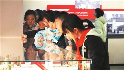 学生认真参观展馆内的展品。记者 刘晓东 摄