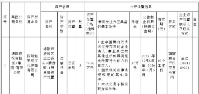 四川越王楼文化传播有限公司资产处置公告