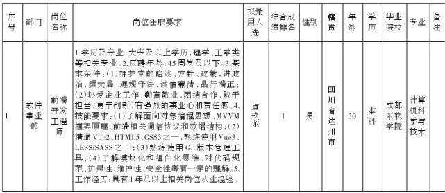 四川九强通信科技有限公司关于招聘前端开发工程师拟录用人员的公示