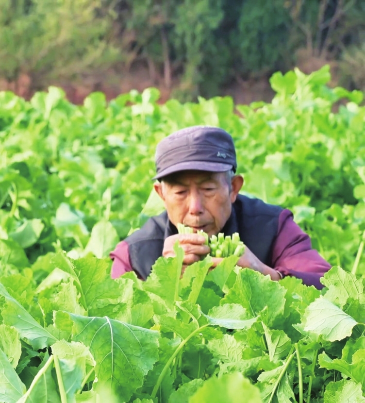 农场的油菜不走“只产菜籽榨油”的老路,而是靠“先采菜薹、后收菜籽”的新模式,实现一株油菜、两份收入,亩均收益较传统种植翻番,成了当地农户增收致富的“黄金产业”。