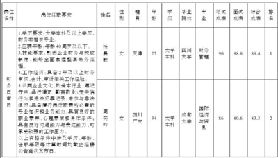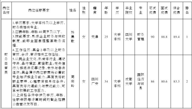 根据绵阳富乐山九洲国际酒店有限公司关于财务日审员招聘公告及招聘相关规定,经笔试、面试等程序,现将招聘成绩予以公示。