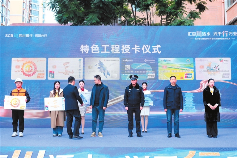 随后,四川银行绵阳分行开业仪式在绵阳121大楼举行。四川银行现场推介特色工程,并为特色工程客户代表授卡,介绍公司金融特色产品,绵阳分行与多家代表企业现场签约。