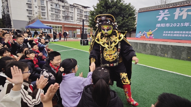 本报讯(白丽华 文/图)为传承中华优秀传统文化,感受川剧艺术的独特魅力,12月12日,绵阳市2025年志愿服务送戏曲进校园走进游仙区石马小学,该活动由绵阳市民政局、绵阳市文化广播电视和旅游局、绵阳市教育和体育局主办,绵阳市老年大学、绵阳市艺术剧院有限责任公司承办。