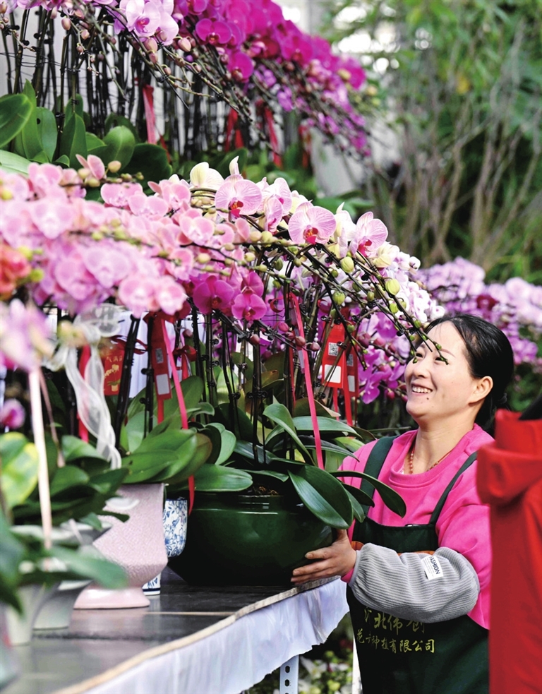 元旦临近,不少市民来到花市购买鲜花,迎接新年。12月28日,工作人员在石家庄市长安区肖家营花卉基地摆放鲜花。