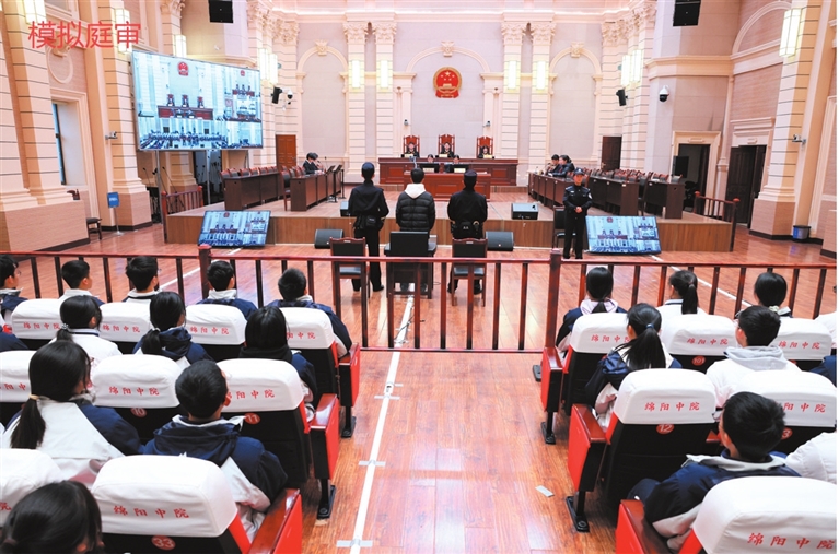 本报讯(邓勇)“现在开庭!”一声庄严的法槌声在肃穆的法庭内响起,坐在审判席上的,是一张张略显稚嫩的面孔。近日,绵阳南山中学的同学们走进绵阳市中级人民法院,在一场未成年人故意伤害案“庭审”中,通过扮演审判员、公诉人、辩护人、被告人等角色,沉浸式体验了一场特殊的模拟法庭活动。
