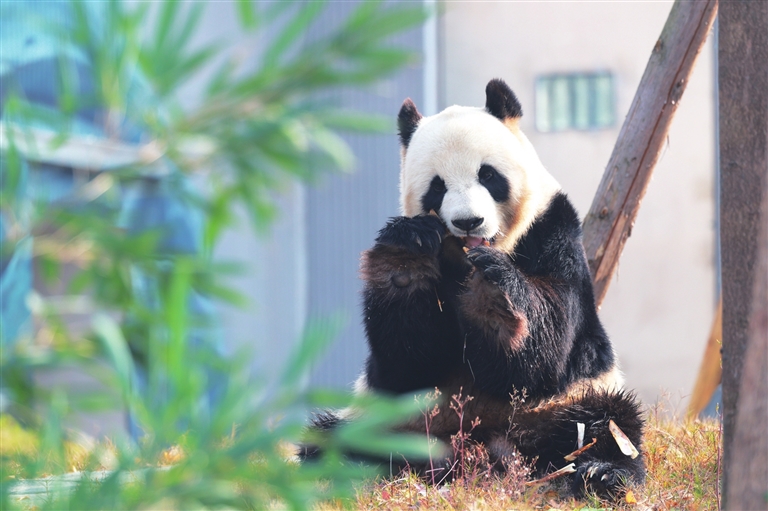 12月29日在中国大熊猫保护研究中心绵阳基地拍摄的大熊猫“福娃”。