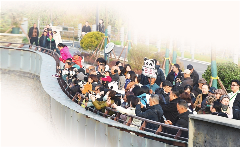 12月29日,游客在中国大熊猫保护研究中心绵阳基地看大熊猫。 记者 王勇 摄