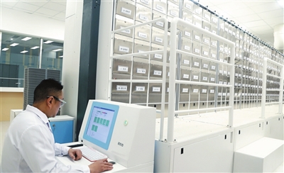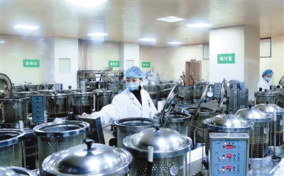 在绵阳市中医医院的中药配方颗粒药房,可以看见蜂巢般的白色药罐有序布满了智能调柜。上百种常规中药被制成浓缩颗粒,分别单独装入长筒状的罐中。药师根据电脑里医生开出的处方品种和剂量,从“蜂巢墙”上快速定位选出对应药罐,扫描条码进行核对后,将药罐放到智能调剂机上进行精准调剂,再用自动包装机进行密封包装。患者每次只需用热水冲服一格中药配方颗粒即可,不仅免去了患者自煎中药的不便,也大大缩短了等候取药的时间。