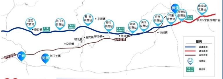 据悉,G5京昆高速公路广元至绵阳扩容项目,北接在建的G5京昆高速汉中至广元段(四川境)扩容工程和已建的G75兰海高速,南连已建的G0521汉蓉高速成绵扩容段和S1绵苍巴段,路线全长123.98公里(绵阳市境内43.5公里),批复概算总投资291.9亿元,主线桥梁36.53公里/74座,隧道总长31.15公里/21座,桥隧比54.58%。绵阳市境内共设互通式立交5处(演武、许州、两弹城、卧龙、魏城,其中魏城为枢纽互通)、收费站5个、服务区1处(梓潼服务区)、停车区1处(七曲山停车区)。