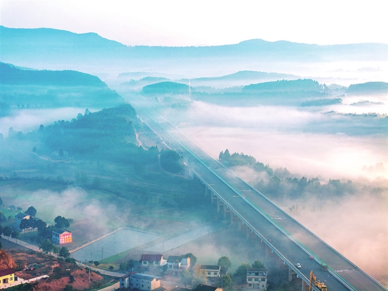 作为北向出川的重要交通动脉,该路段通车后将进一步完善国家高速公路网络结构,为公众便捷出行、文旅融合发展与区域经济社会协同注入新的动力。通车后,魏城至梓潼的车程将由目前的40分钟缩短至约15分钟,梓潼正式迈入“双高速”时代(在建的京昆高速广绵扩容项目和已建成的G0521汉蓉高速成绵扩容段),区域交通格局得到进一步优化。