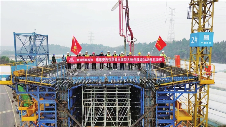 本报讯 (记者 唐云峰 唐甜)近日,由蜀道铁路投资集团主导投资、中建八局承建的绵遂资内铁路绵遂段关键节点——位于绵阳市丰谷镇的青水堰特大桥,其连续梁主墩0号块顺利完成浇筑,较原计划提前整整30天。
