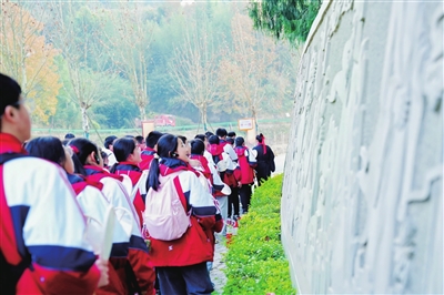 学生在盐亭华夏母亲嫘祖国家纪念公园参加研学活动。 记者 彭紫薇 摄