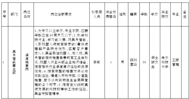 根据四川九洲投资控股集团有限公司软件与数据智能军团发布的招聘公告及招聘相关规定,经测试、考察、体检等程序,拟录用李敏同志到四川九洲投资控股集团有限公司软件与数据智能军团工作,现予以公示,具体情况如下: