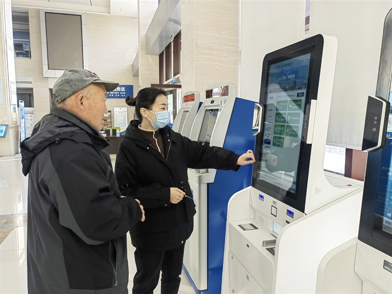 工作人员指导老人通过智慧终端进行验证。童亮 摄