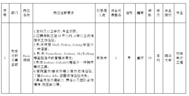 四川虹信软件股份有限公司关于招聘Basis顾问岗位拟录用人员的公示