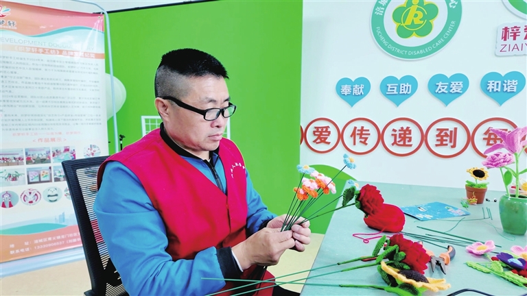 “托养中心有很多残疾人朋友都锻炼得特别好,现在我也和他们一起坚持锻炼,康复效果很好。”张永国告诉记者,经过残联组织的技能培训,他现在已经能独立完成手工作品摆件,在集市上售卖时得到了大家的认可,他想办一个手工工作室,帮助更多残疾人士的同时也为社会创造一些价值。