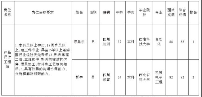 四川华丰科技股份有限公司关于招聘产品设计工程师岗位测试成绩的公示